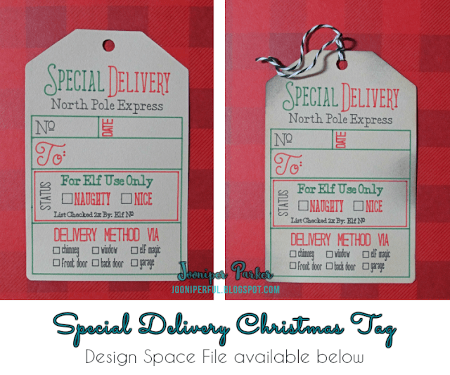 This Special Delivery Christmas gift tag was designed in Cricut Design Space to utilize the drawing/writing feature for the Cricut Explore. Everything is written by the Explore and the tag shape is the only thing that is cut out. I used a slew of different writing style Cricut fonts, so